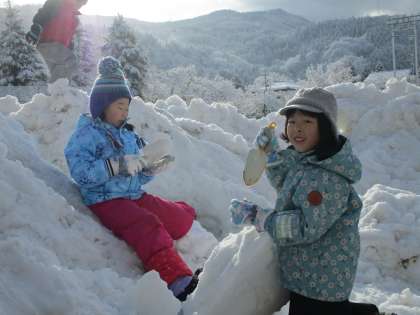 今日は、雪遊びをしました。「かまくら」「すべり台」などを作ったり、グラウンドを散歩したりしていました。楽しく活動していました。スキーウェアなどの準備、ありがとうございました。