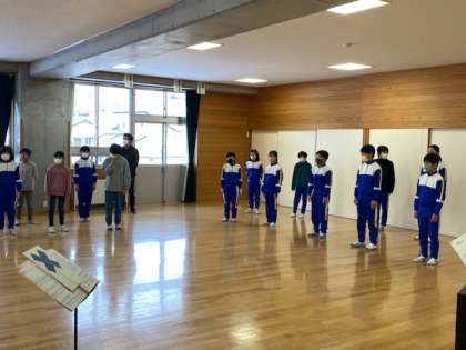 1限は全校音楽で卒業式の歌の練習をしました。はじめに1〜5年生で在校生が歌う歌の練習をしました。その後、後半は6年生の歌練習でした。