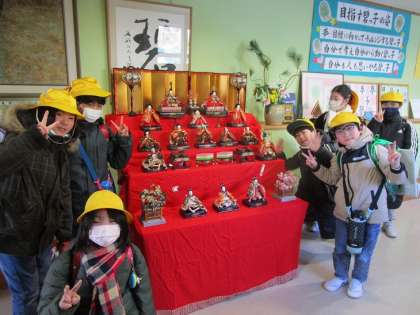 2月17日(金)ひな人形とかわいい碧っ子 公開日 2023/02/17 更新日 2023/02/17 碧っ子の姿から 学校にあるおひな様を飾りました。古いものですが、飾ると周りがパッ華やぎます。 そこへ、かわいい碧っ子が来たので一緒にパチリ。