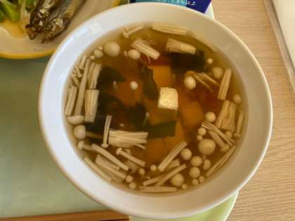 今日は、ひな祭り献立です。豚そぼろと炒り卵がのった、そぼろ丼は、甘じょっぱい味付けがとてもよく、食が進みます。今日もおいしくいただきました!