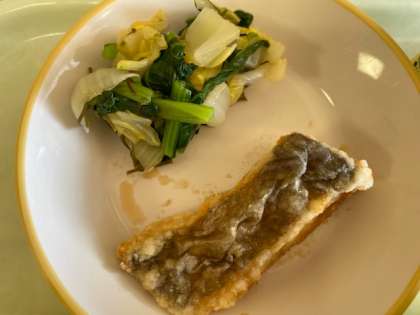 揚げ魚はカリカリしている揚げ魚、さわやかなレモン風味で加わっていて食べやすくなっています。大和煮は、干ししいたけやグリーンピース、鶏肉、大根などいろいろな食材の味が楽しめました。今日もおいしくいただきました!