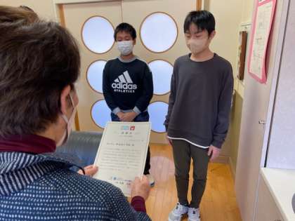ユネスコの世界寺子屋運動に協力するため、児童会を中心に集めてきた「書きそんじハガキ」を6年生の代表が、富山ユネスコ協会副会長の水上先生にお渡ししました。水上先生からは、感謝状をいただきました。