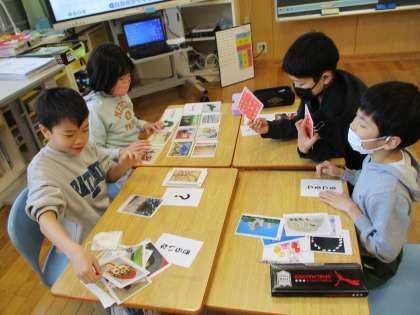 図工で「アートカード」を使って鑑賞しました。初めて見る作品に驚き、楽しみながら取り組みました。