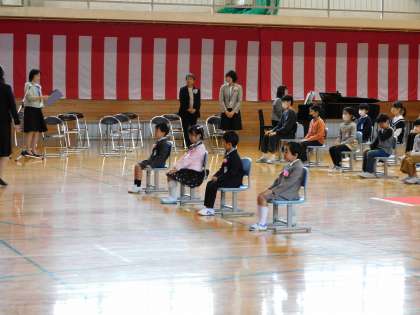 しゃきっとした姿勢で、堂々と体育館に入場してきた1年生。椅子に座るときも、背中がぴんとしていて、かっこいいです。