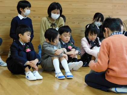 式の後は、6年生の「本の読み聞かせ」を聴いたり、6年生の登校班のリーダーに来週から始まる登校の仕方について聞いたりしました。1年生は6年生とすぐに仲良くなっています。