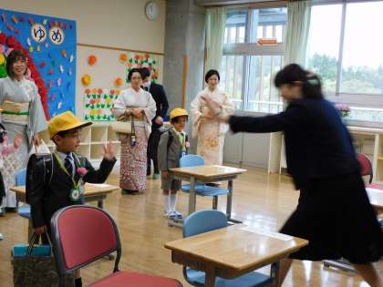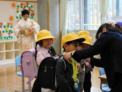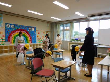 担任の先生と帰りの準備をして、笑顔で「さよなら」しました。また来週、元気に登校する1年生を待っています。