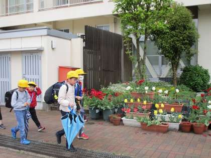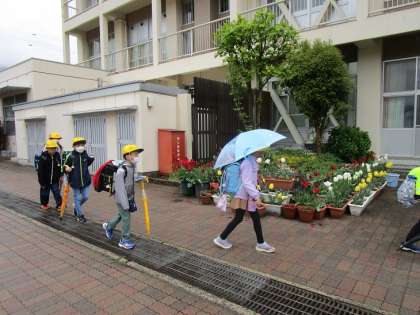 今朝は雨が降っていて気温も低いですが、子供たちは元気に登校してきました。