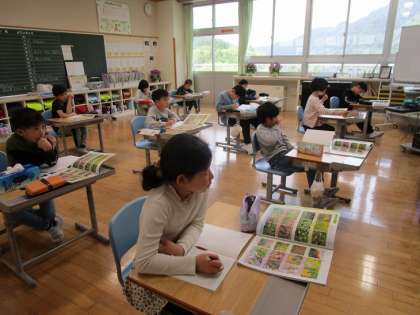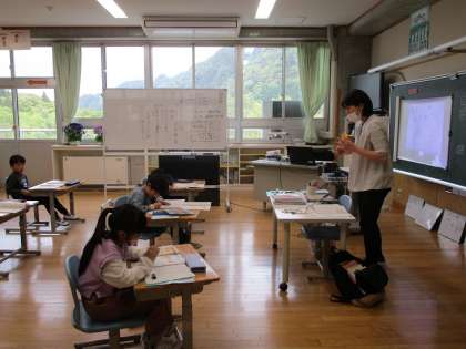 1年生と2年生は算数、3年生は理科の授業をしていました。