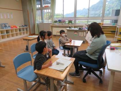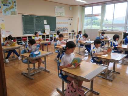 しーんと読書に集中しています。1年生は担任の先生に読み聞かせをしてもらっていました。