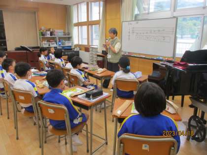 4月18日(火) 3年生 音楽科 リコーダーデビュー! 公開日 2023/04/19 更新日 2023/04/19 3年生の部屋 3年生の音楽では、初めてリコーダーにふれました。自由に音を出し、気付いたことを発表し合っていました。