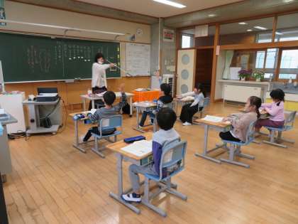 2年生は国語の時間に「思い出して書こう」の学習で、大切なことを抜かさず書くためにどのようにしたらよいか話し合いました。「したこと、見たこと、思ったこと」を例文から見付け、自分の文に取り入れようと真剣に学んでいました。