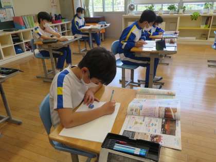 社会科では、6年生の1学期前半は公民分野を学習します。今日は、内閣の仕事について調べたり話し合ったりしながら、学習を行っていました。難しい言葉が出てきますが、身近な生活と知識をつなげ、国民の一人として、関心をもって学習を深めていってほしいと願っています。
