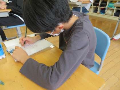 図をかいたり、数直線を基にして考えたりして自分の考えをノートにまとめました。今まで学習したことを使って、新しい学習を学んでいこうとする真剣な姿です。