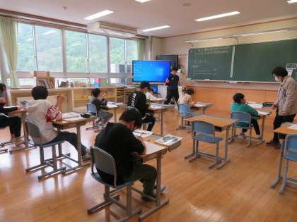 算数では、分数同士のかけ算に取り組んでいる6年生。