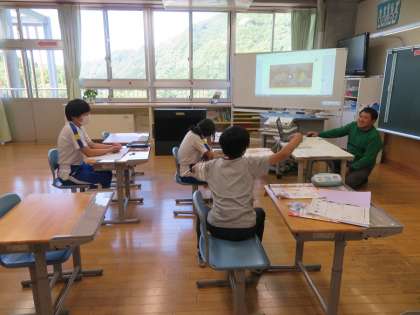 動画を見て、子供たちは真剣に会話を聞き、内容を理解しようとしています。