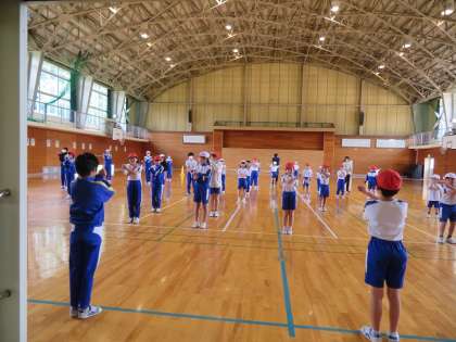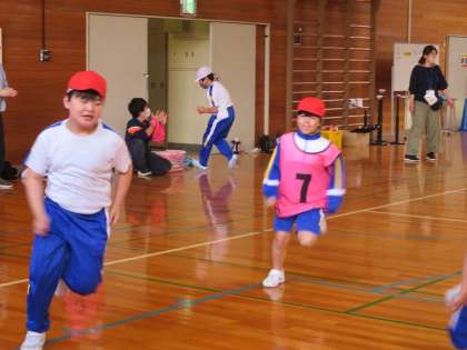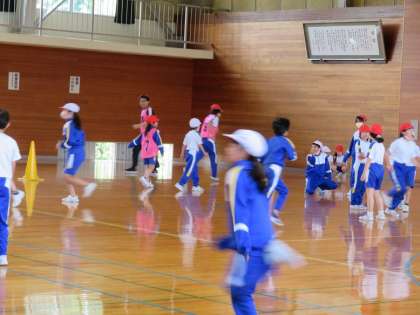 けいドロの鬼は、各学年の日直と3年生担任です。体育館を思う存分走り回りました。