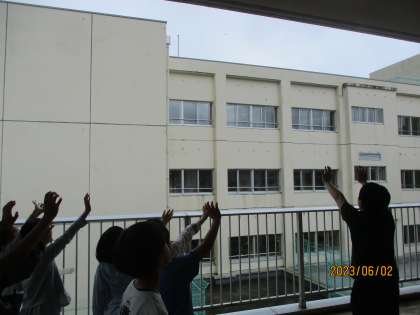 天気が回復したタイミングでみんなで蝶を放しました。蝶が見えなくなるまで、ずっと手を振り続けている子供たちでした。