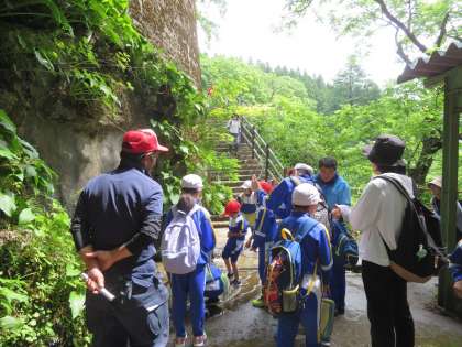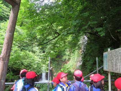いよいよ活動開始です。赤団は滝探検、白団は「守る会」の方からお話を聞きました。
