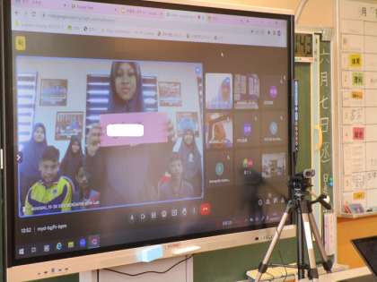 今日はオンラインでの交流1回目でした。互いの自己紹介や学校紹介の後、質問し合いました。