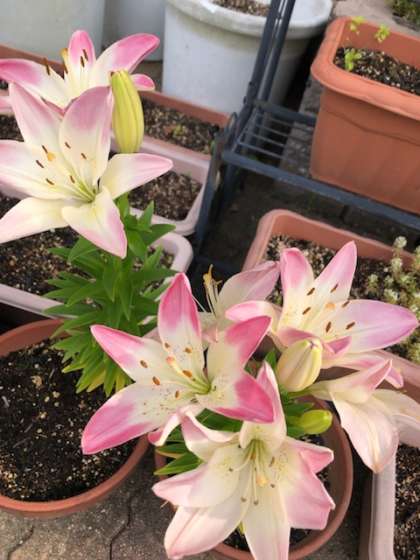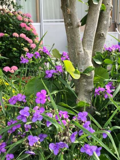 ユリやアジサイがきれいに咲いています。