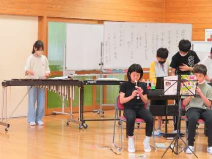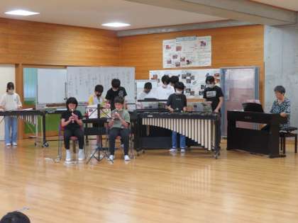 音楽の時間に演奏を行ってきた「ラバースコンチェルト」の「教科書バージョン」「冷凍こんにゃくバージョン」「結婚式バージョン」の3曲を披露しました。