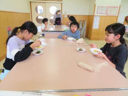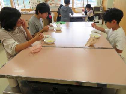 どの子もおいしそうに食べています。自分たちで調理したものは、格別な味がするのでしょうね。家族の皆さんのために調理する日も近いのではないでしょうか。