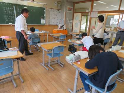 「分度器の使い方をマスターしよう」と子供たちは、真剣に学習に取り組んでいます。