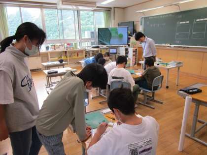 植物のからだの水の通り道について、「根」「茎」「葉」のグループに分かれて調べていました。