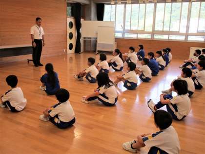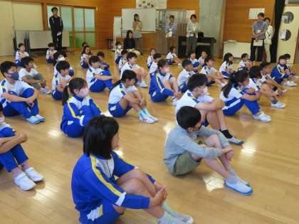 元気健康委員会の子供たちの進行で行いました。校長の話や児童代表の言葉やプール使用上の注意を碧っ子全員が真剣に聞いていました。