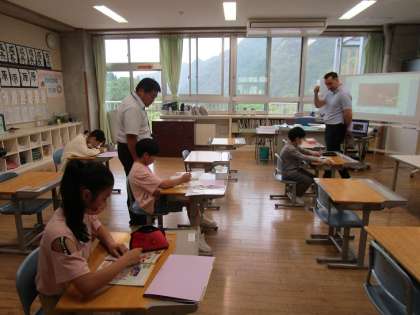 というデジタル教科書のやり取りを聞きとって、教科書の絵と数字を線で結んでいました。