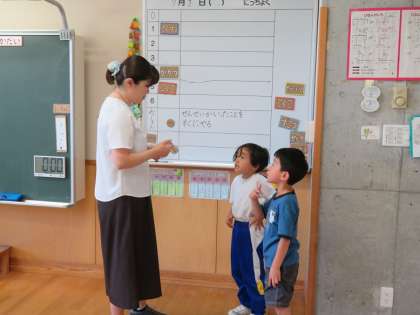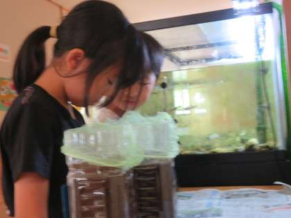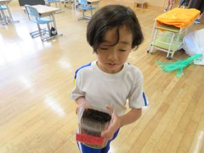 地域の方にもらったカブトムシの幼虫を、大切に育てている1年生。名前を付けて様子を観察しています。今日は、その中の1匹が孵化しました。自分のカブトムシをじっくり見つめる子、これから孵化したカブトムシをどうしていこうか担任と相談する子。うれしそうです。