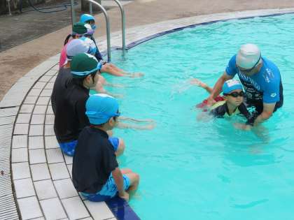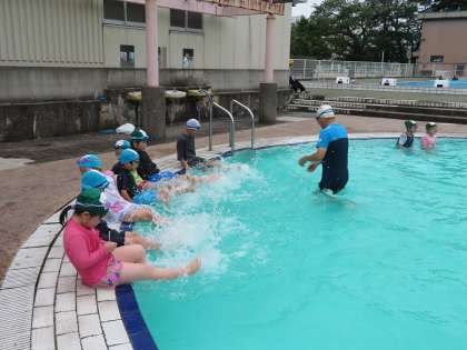 少し肌寒い日でしたが、水に慣れようとがんばっている子供たちです。