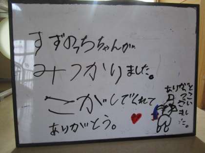 1年生が育てているカブトムシの1匹が土日に成虫になったらしく、ネットをやぶり脱走していました。朝からあらゆる場所を捜索したのですが、見当たりません。一人の子の提案で、ポスターを書くことになりました。