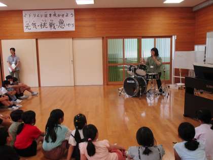 最後には、今月の歌で歌っている「Dream & Dream」でセッションをしました。いつも子供たちの歌声に感動していますが、ドラムが入るとさらに素敵になりました。