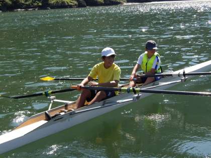 8月23日(水)5・6年部活動体験一日目(ボート部)1 公開日 2023/08/23 更新日 2023/08/23 学校行事 ボート部は、県漕艇場で行いました。 陸上での練習の後、ボートに乗り、漕ぐ体験もさせていただきました。