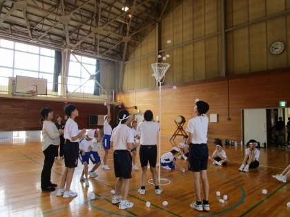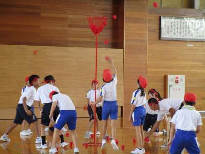 今年度は、選抜リレーに出ない3年〜中学生が玉入れの競技に出場します。今日はその練習を行いました。
