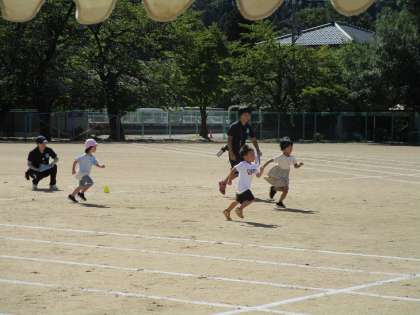 保育所の年長児、年中児が、かわいらしく、元気にかけっこをしました。