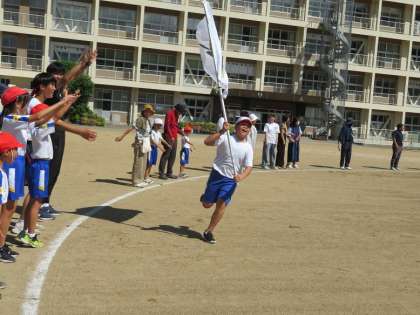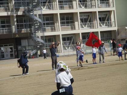 今年は保護者の方だけでなく、地域の方にもたくさん来ていただいたので、みんなで輪になり、「わー」っと大きな声を出してウェーブを行いました。