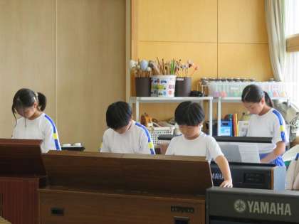 今日の音楽は、ウォーミングアップにカノン形式で歌を歌い、その後にオルガンで「楽しいマーチ」を、リコーダーで「情熱大陸」の合奏練習を行いました。