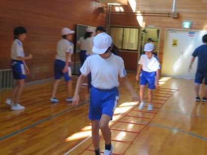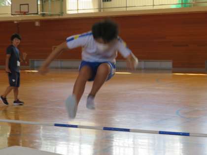 そして、5年生にとって初めて行う走り高跳び。身長と50m走の記録から目標の高さを設定し、手始めに60cmの高さを跳んでみました。今後は、跳び方や助走の仕方等を学びながら、走り高跳びの楽しさを味わっていく予定です。
