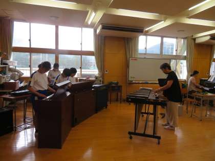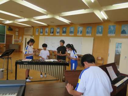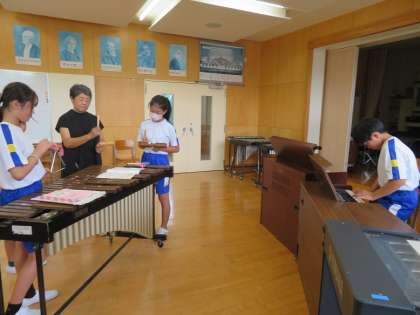 今日の「楽しいマーチ」の合奏は、打楽器が加わりました。