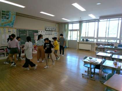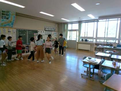 4・5年生で協力して8の字跳び練習を行っています。新記録目指して頑張っています。