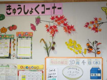 きゅうしょくコーナーも秋を迎えました。
