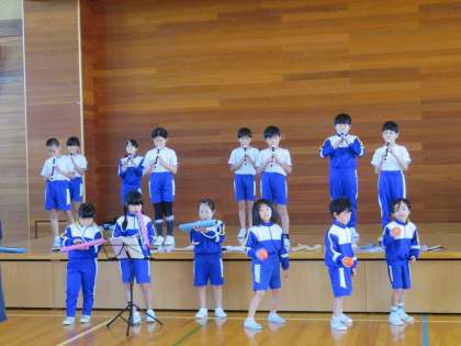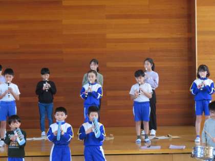 今年度、初めてリコーダーを吹く3年生と昨年からリコーダーに触れてきた4年生。今までも一生懸命練習し、これからも練習を続けるたくましい子供たちです。