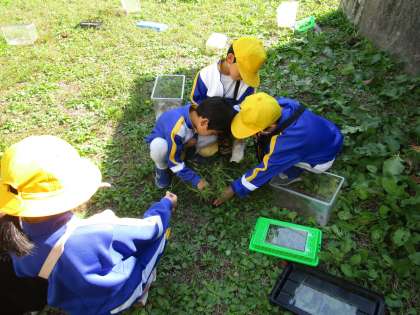 虫たちにお手紙を書き、それぞれいた場所に戻しに行きました。元気に飛び立つ虫たちに「ばいば〜い」「元気でね〜」と声をかけながらさよならしました。