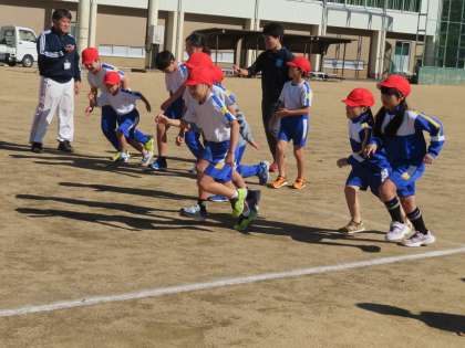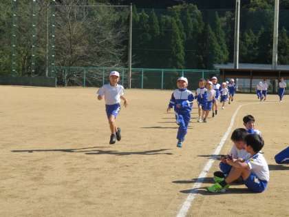 高学年に続けと、1〜4年生も走るペースを考えて練習をしています。