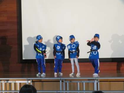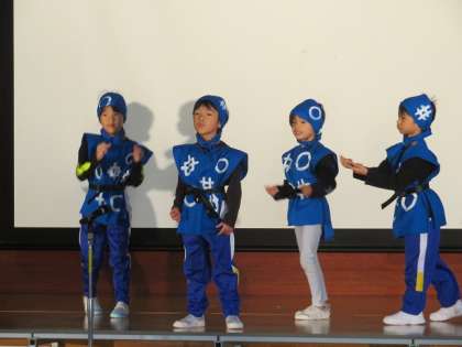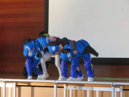 今日は、全員そろい堂々と予行練習での演技をがんばりました。全校児童を前にするととても緊張したようですが、伸び伸びした演技にたくさんの拍手をもらい、うれしそうな子供たちでした。