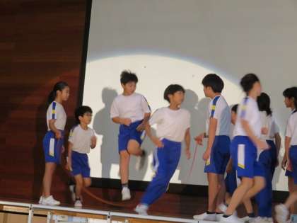 マット運動での全員によるブリッジや肩倒立、初めて誰も引っかからなかった8の字跳び。担任が感動していた姿が印象的でした。
