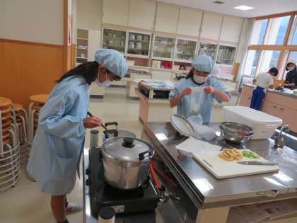 子供たちは、教科書を手がかりに協力しながら調理実習を行いました。