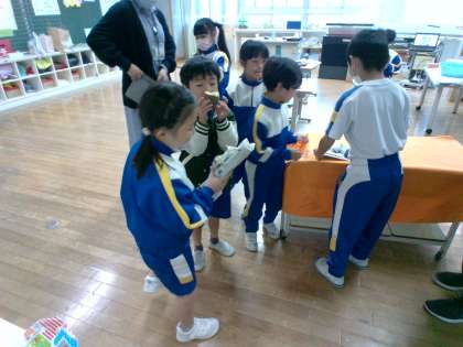 生活科の学習で育てたさつまいもを焼きいもにしました。おいしくできたか確かめ、1年生にもおすそわけをしている優しい姿が見られました。